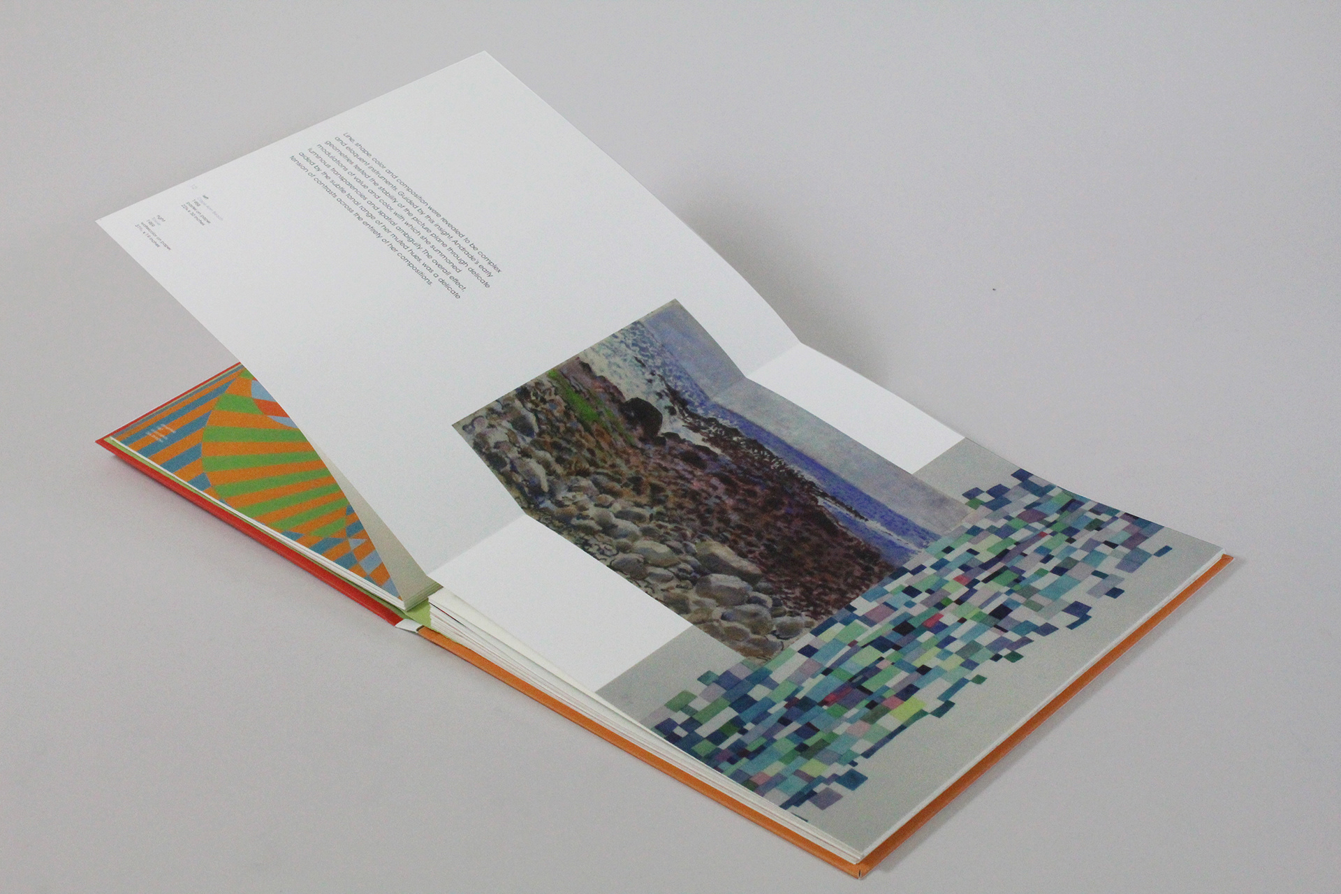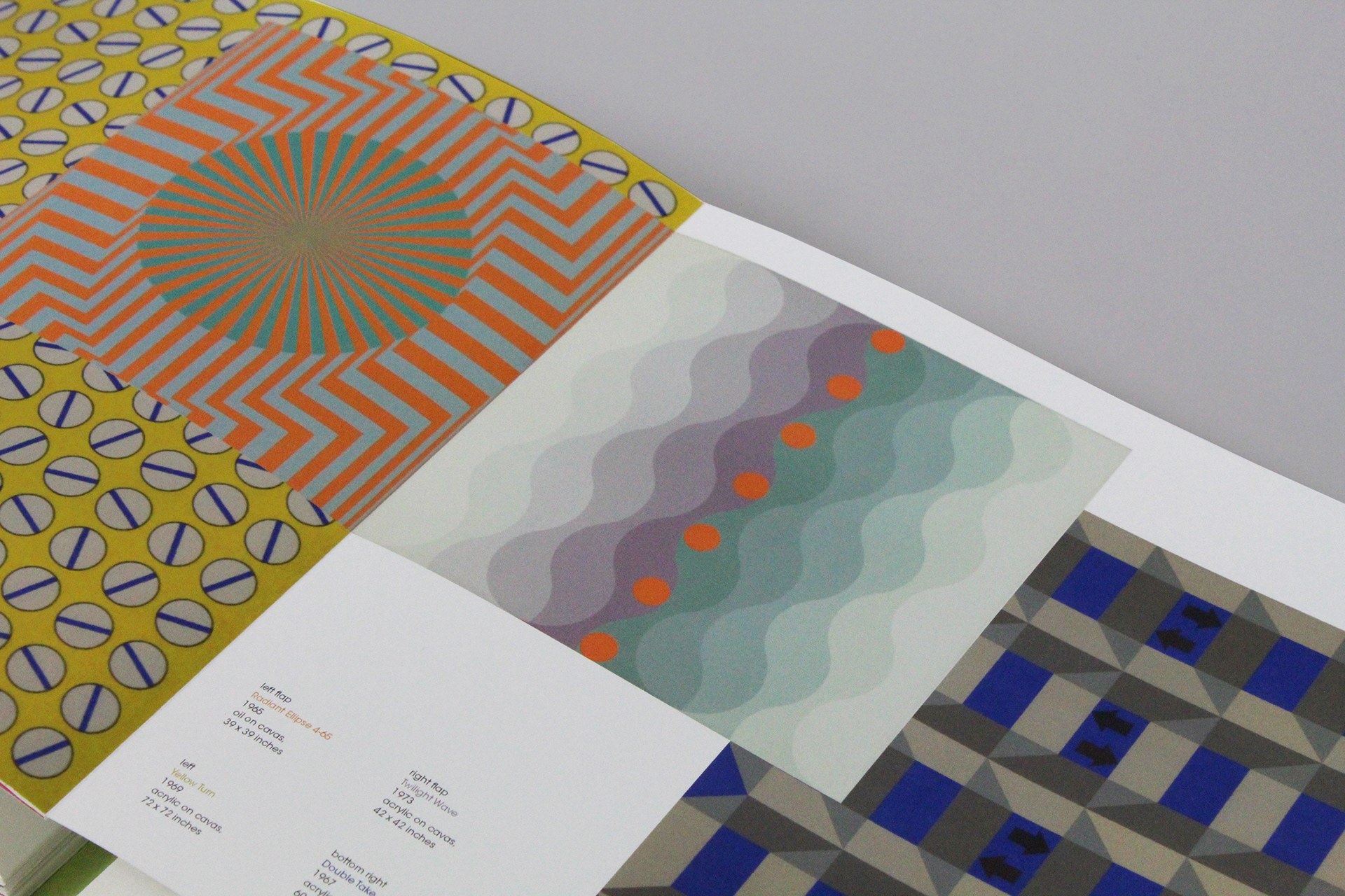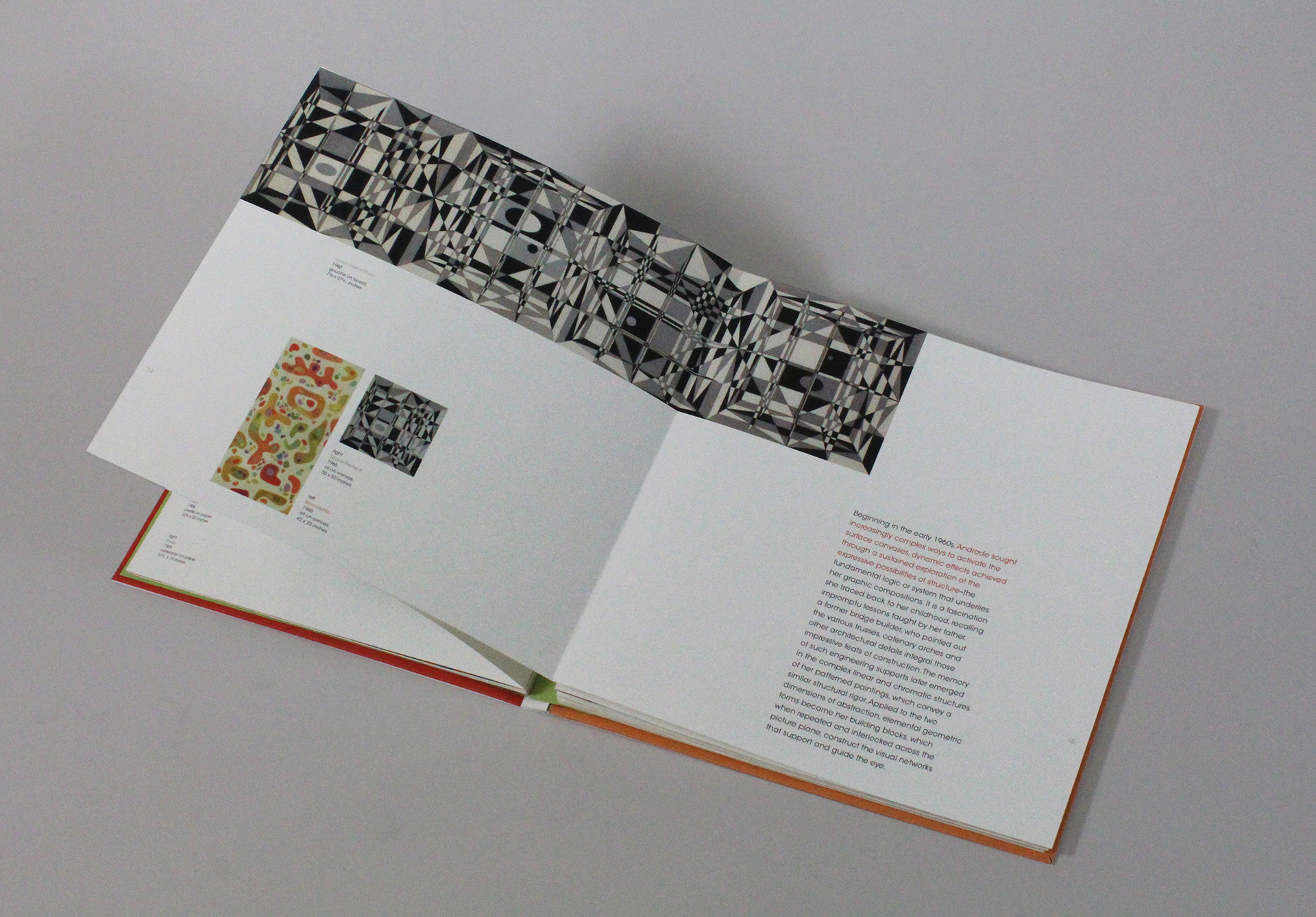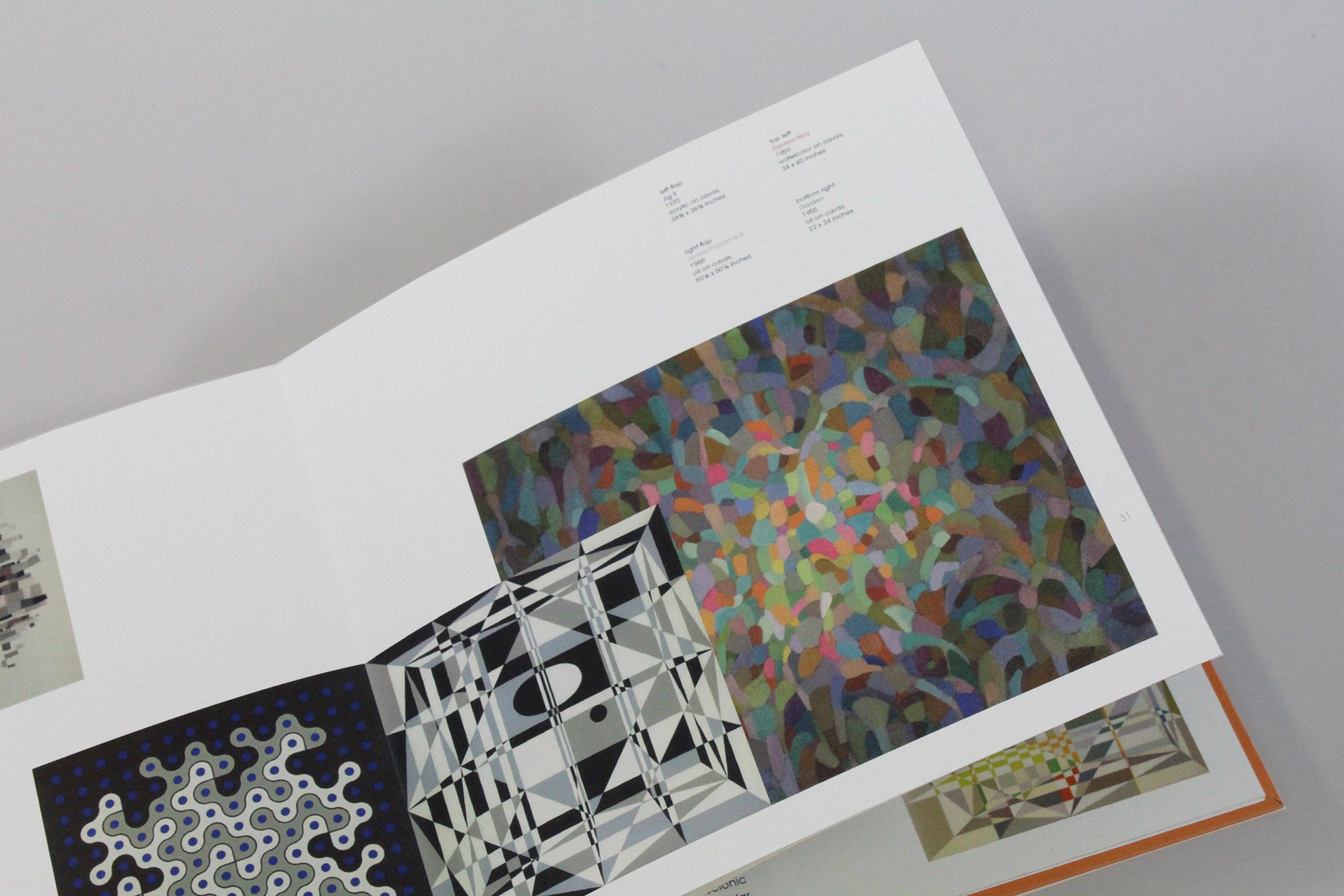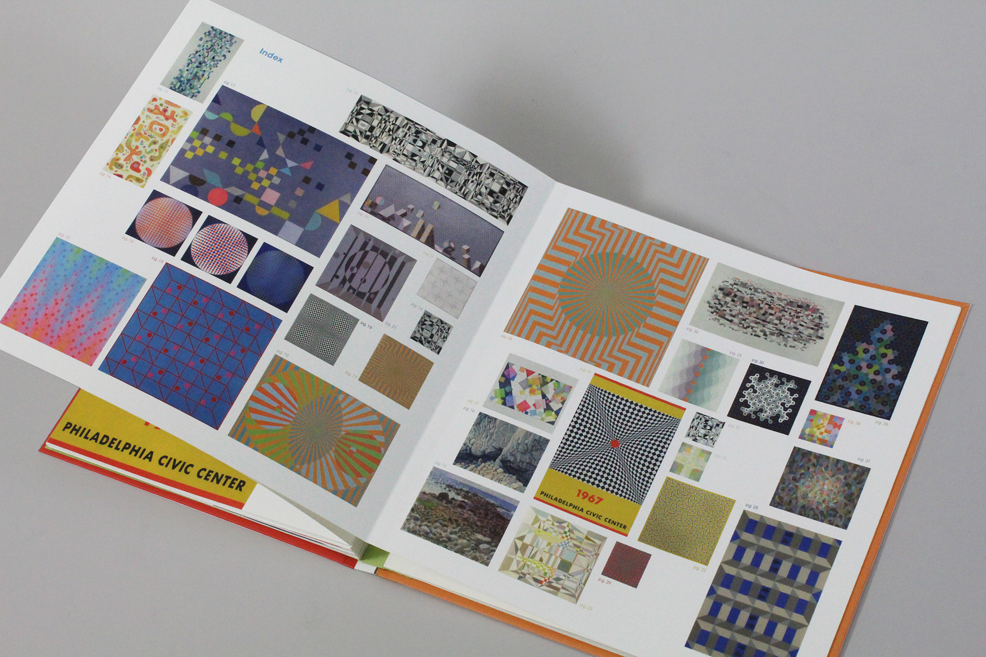 This 36-page, 10-by-10-inch, hardcover-bound artist catalog features the geometric, vibrating work of Edna Andrade. Images were paired and layered together based on shape, color, and composition.