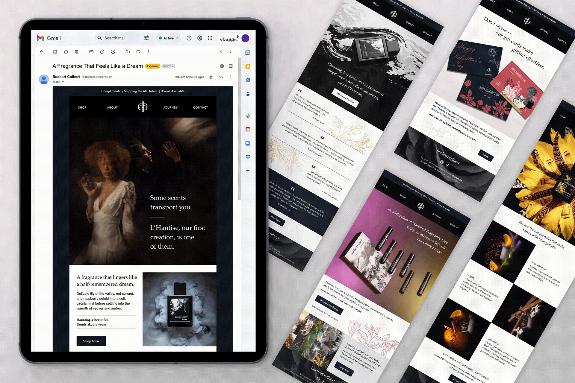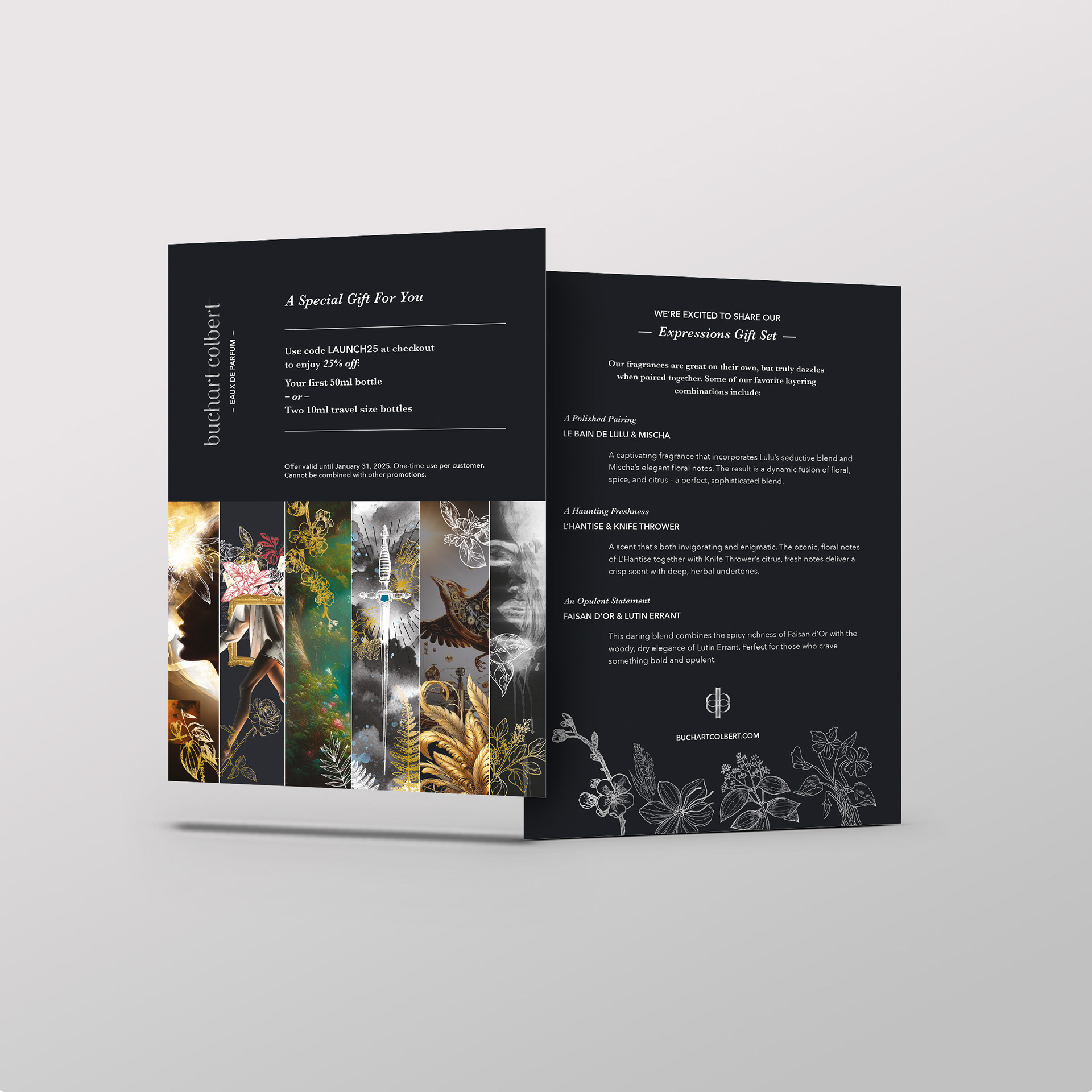 Buchart Colbet is a new indie fragrance brand whose scent stories are inspired by music and literature. From brand identity and packaging to website design and marketing collateral, including brochures, training materials, email campaigns, and social media, I helped develop, launch, maintain, and expand the brand’s overall visual identity.