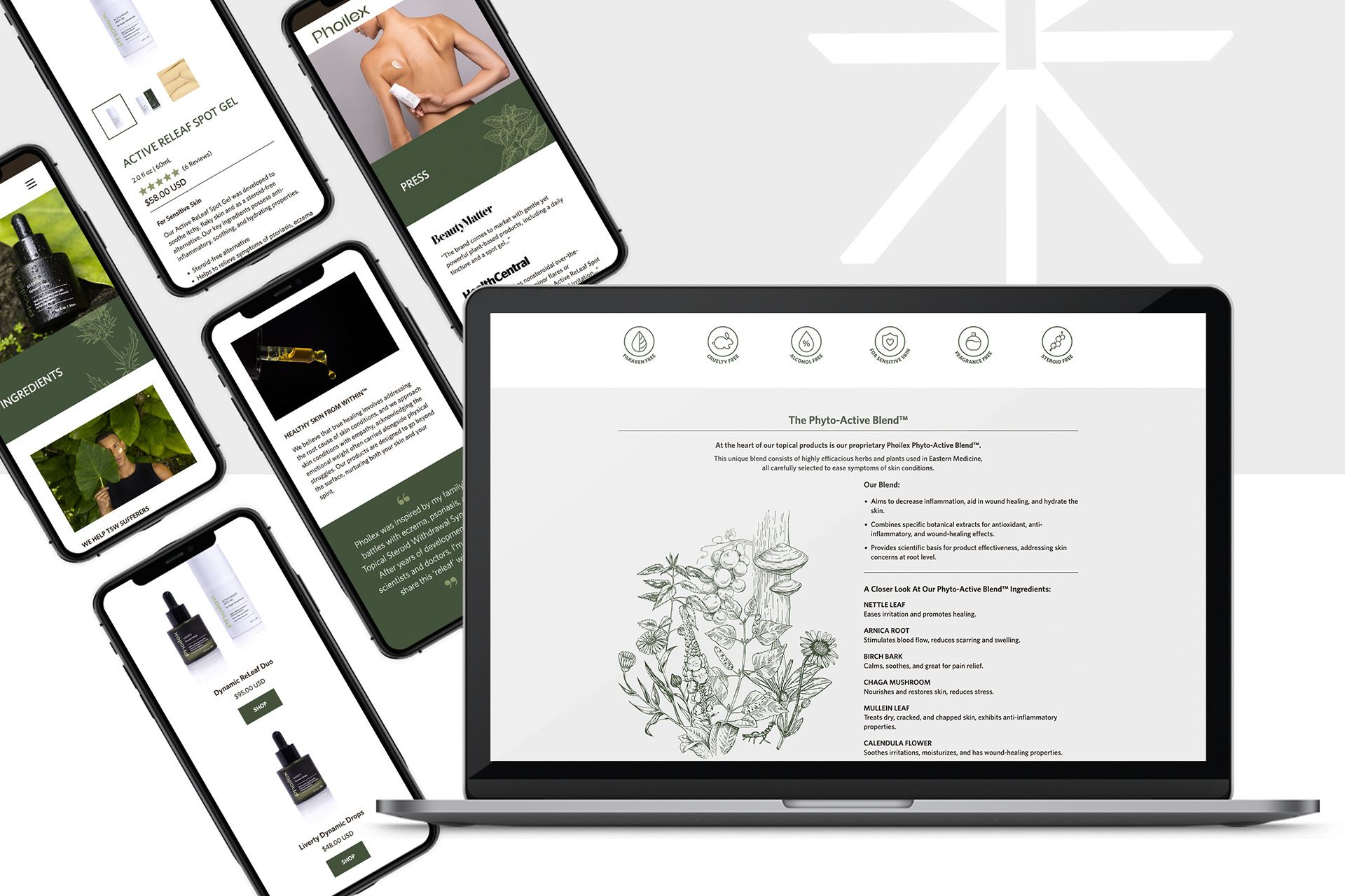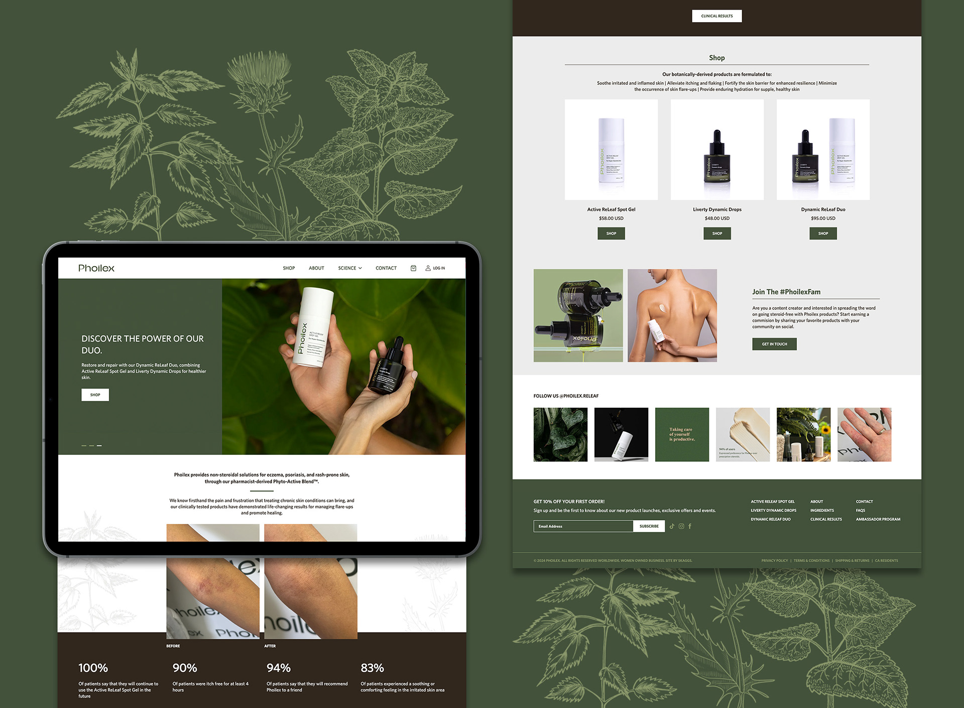 Phoilex is a wellness skincare brand dedicated to supporting individuals struggling with sensitive skin and eczema. I led the redesign of the brand’s existing packaging to create a sleek, modern aesthetic that appealed to all genders and age groups. The updated visual identity was then extended to develop an engaging website that communicates the efficacy and science behind the products.