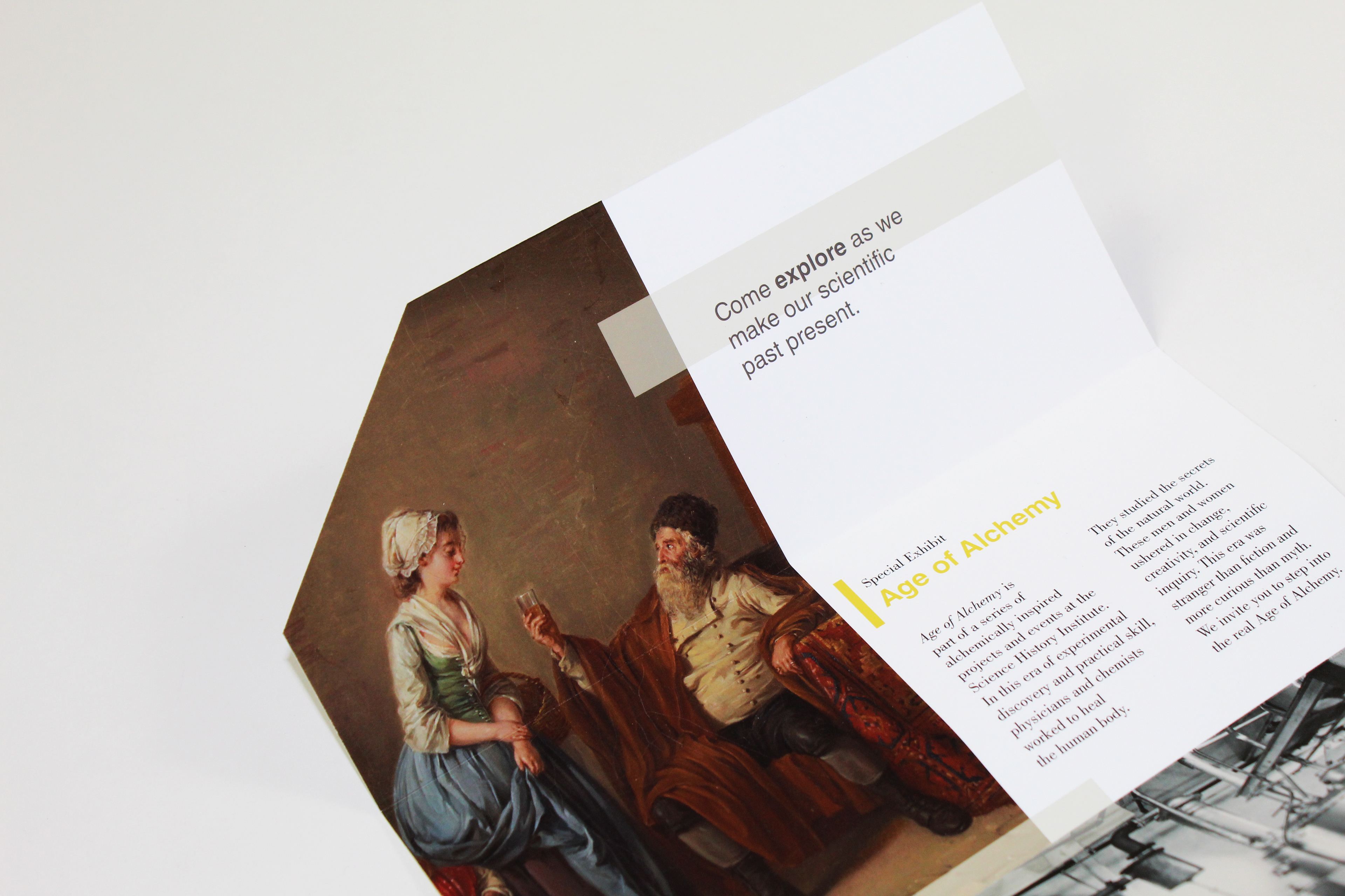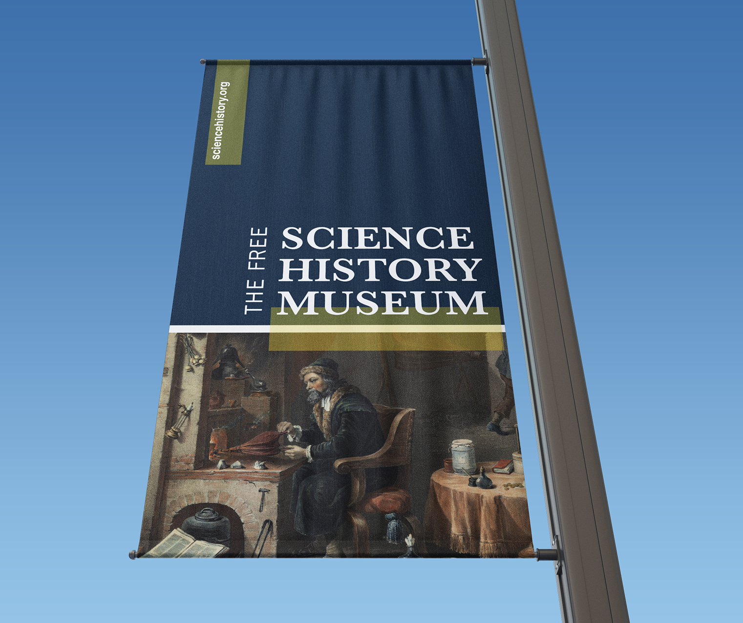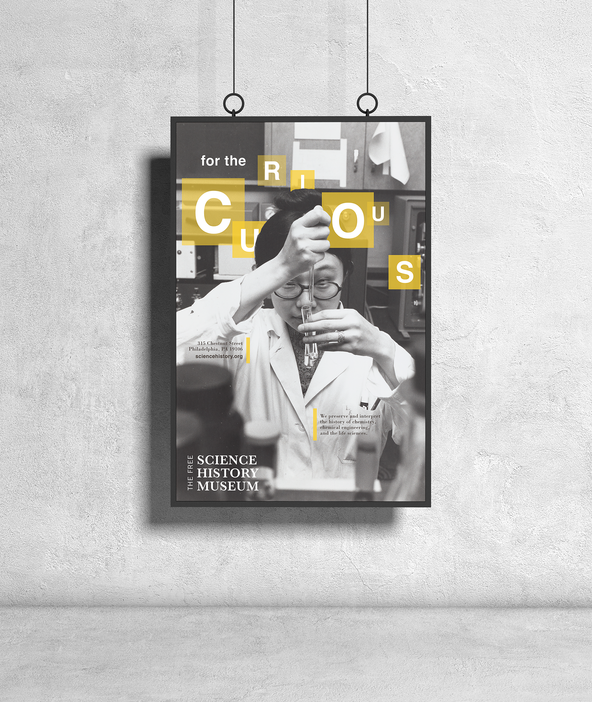 Rebranding the Science History Institute included a new focus on the organization’s mission, including archived imagery and introducing a new expressive color palette to their exhibit branding. The new branding highlights the evolution of science, sharing the stories of innovators, and educating visitors about discoveries that have helped shape our lives. This main and special exhibit poster, web banner ad, flag pole banner, brochure, and letterhead and business card features a bright yellow color which is meant to inspire the feeling of joy and acquired knowledge because this color resonates with the logical side of the brain by stimulating our mental faculties.