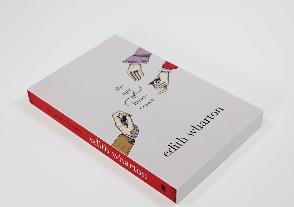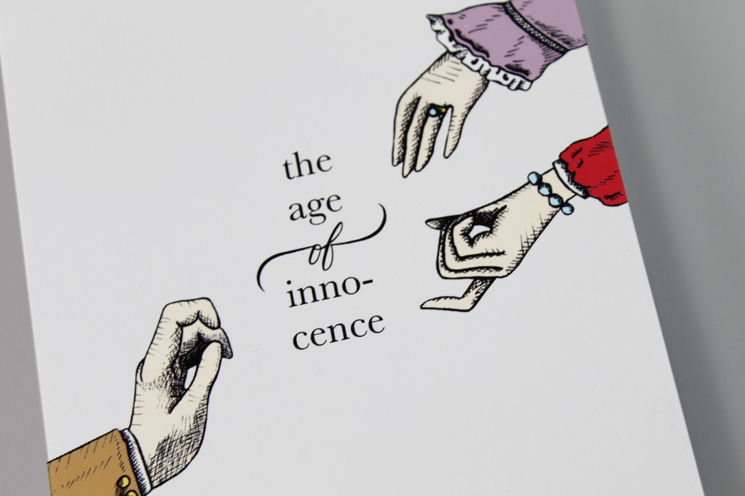 This cover, spine, and back cover design for the classic novel, “The Age of Innocence”, includes hand-drawn, calligraphy and illustrations based on 19th century fashion and woodcut style printmaking. The illustration of the hands highlight the story’s adulterous plot line between a husband, wife, and the wife’s sister.